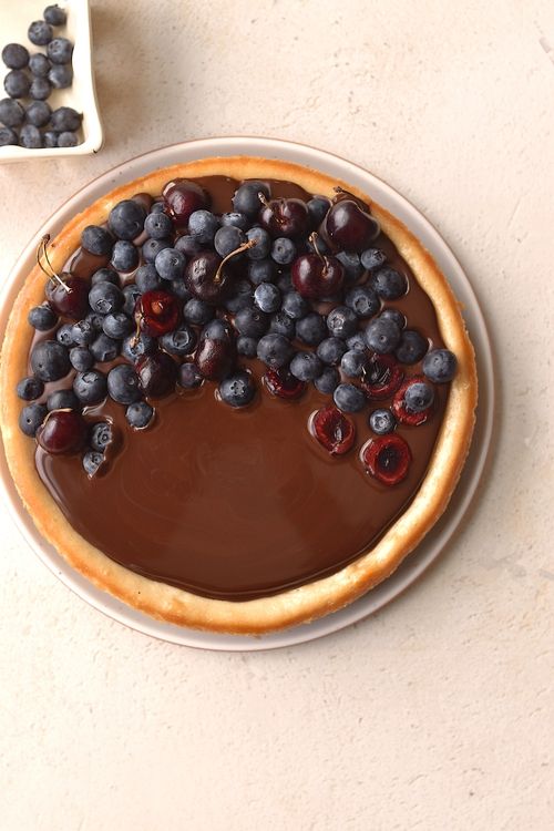 - Top your cheesecake with melted chocolate and fresh fruit if you desire!