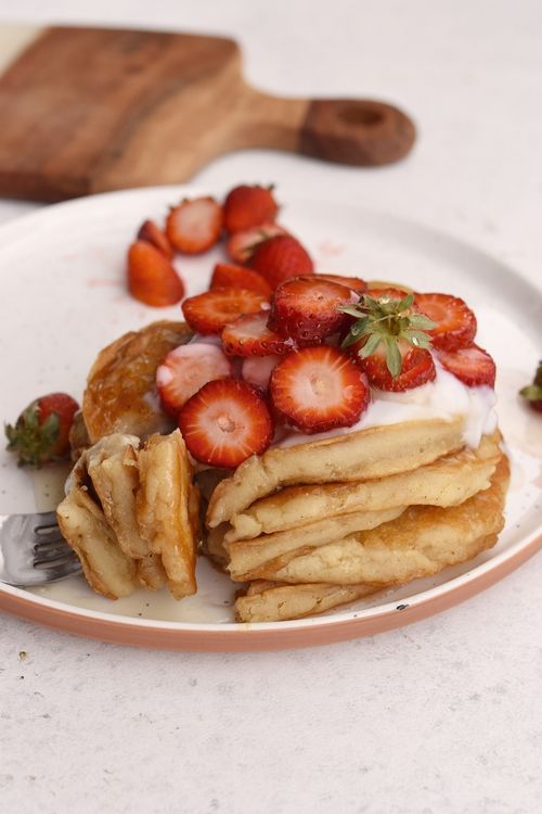 - For the yogurt topping just combine all ingredients. Mix and top with fresh strawberries and pure maple syrup.