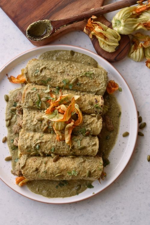 These Vegan Green Mole Enchiladas are a delicious, flavorful, and creamy dish, with just the right amount of spice!